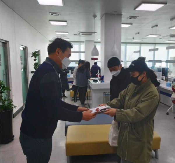 이달 4일 올해 첫 출생신고를 한 가정에는 육아가방 꾸러미와 함께 특별한 이벤트도 제공됐다. 동장과 사회단체원들의 덕담이 적힌 축하카드를 가방 꾸러미와 함께 전달하면서 2021년 새해둥이 출생을 축하하는 기념 촬영이 이뤄졌다.