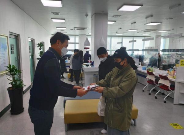 이달 4일 올해 첫 출생신고를 한 가정에는 육아가방 꾸러미와 함께 특별한 이벤트도 제공됐다. 동장과 사회단체원들의 덕담이 적힌 축하카드를 가방 꾸러미와 함께 전달하면서 2021년 새해둥이 출생을 축하하는 기념 촬영이 이뤄졌다.