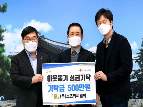 또한, 이날 오포읍에 위치한 이륜자동차 및 부품 무역업체인 ㈜스즈키씨엠씨 강정일 대표도 광주시에 어려운 이웃을 위해 성금 500만원을 전달했다.