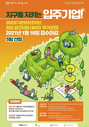 [KNT한국뉴스타임] 광명시 광명경기문화창조허브는 ‘2021년 상반기 창업 공간 지원 사업’에 참여할 입주기업 5개 팀을 추가 모집한다.