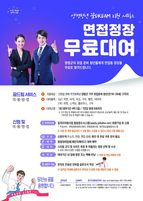 해당사업은 지난 19년부터 시작해 취업 준비에 경제적 부담을 겪는 양평군 청년 구직자들에게 면접 정장 구입비의 부담을 줄여 줬다.