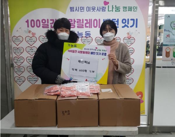 [KNT한국뉴스타임] 의정부시 가능동주민센터는 가능동 주민인 배인혁 씨가 1월 13일 핫팩 600개를 기탁했다고 밝혔다.