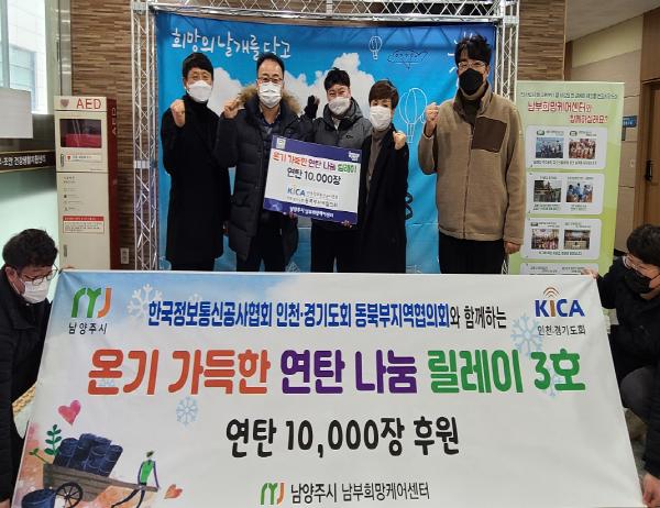 [KNT한국뉴스타임] 한국정보통신공사협회 동북부지역협의회는 지난 12일 남부희망케어센터에서 진행한 ‘온기 가득한 연탄 나눔 릴레이’ 행사에 3호로 참여했다고 전했다.