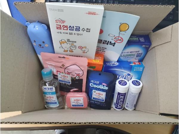 비대면 금연 클리닉 등록 시 금연에 필요한 금연껌과 니코틴 패치 등 보조제를 집에서 택배로 받을 수 있으며, 3개월?6개월 금연 성공 시에는 성공 축하 기념품도 함께 증정한다.