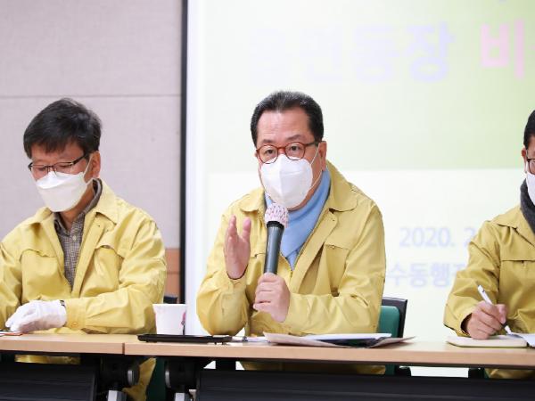 지난 27일‘코로나-19 긴급대책 임시 시장실’을 설치한 이후 두 번째 열린 긴급 대책회의에서는 먼저, 읍면동장이 그간 추진실적을 보고하고 실국소장이 읍면동 협조사항을 전달한데 이어 체계적인 방역과 예방대책 등에 대해 논의했다.
