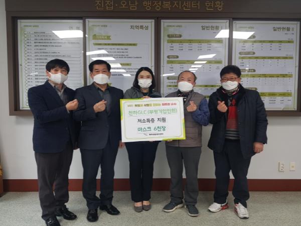[KNT한국뉴스타임] 남양주시 진접오남행정복지센터(센터장 이상운)는 15일 마스크 제조업체 ㈜천하지엘씨(대표 강성원)가 코로나19 예방을 위해 KF-94 마스크 6천매를 북부희망케어센터에 기탁했다고 밝혔다.