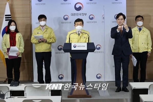 [한국뉴스타임=정부] 정부가 코로나19 재확산을 막기 위해 현행 '사회적 거리두기'와 전국 5인 이상 사적모임 금지 조치를 이달 1월 말까지 2주 더 연장하고, 다음 달 2월 1∼14일 설연휴 특별방역대책도 추진한다고 밝혔다.