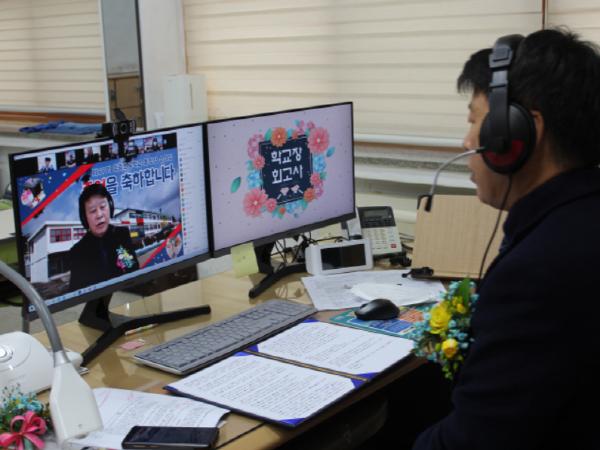최용근 교장선생님은 “코로나 19로 인하여 졸업장 수여식을 못 하게 되어 안타까운 마음으로 「추억해ZOOM 溫(온)라인 졸업식」을 계획하였다. 비대면 졸업장 수여식을 처음 준비하는 어려움이 있었는데 졸업장 수여식을 준비를 해주신 교사들에게 감사드리고 학생, 학부모, 교직원들에게 참여해주셔서 감사하다는 것을 말씀드리고 싶고 「추억해ZOOM 溫(온)라인 졸업식」은 2020학년도 졸업생에게 특별한 추억이 될 것이라고 생각하며 졸업하는 6학년 학생들의 졸업을 축하한다.라고 밝혔다.
