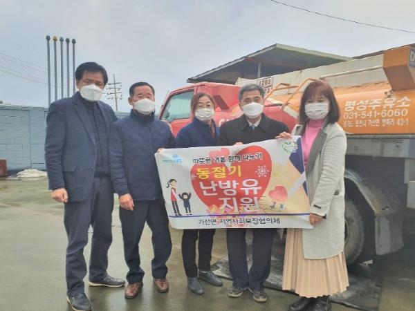가산면지역사회보장협의체는 에너지 취약계층이 따뜻한 겨울을 지낼 수 있도록 관내 난방 취약가구 15가정을 선정하여 가구당 20만원 상당 난방유 쿠폰을 전달한다.