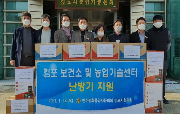 [KNT한국뉴스타임] 민주평화통일자문회의 김포시협의회는 01월 14일 11시 농업기술센터, 14시 김포시 보건소를 방문하여 난방기와 물품 등을 전달했다.