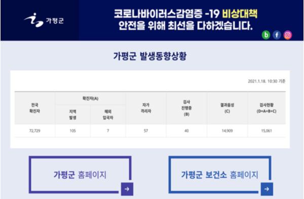 112번째 확진자는 가평읍 40대 남성으로 지난 15일 보건소에서 검사 후, 확진판정을 받았다.