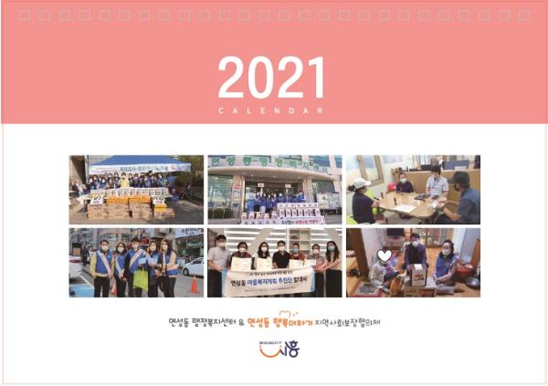 ?년도 감사 캘린더’에는 한 해 동안 후원해주신 여러 후원자들의 모습과 복지사각지대 발굴, 특화사업 등 다양한 분야에서 적극적으로 활동에 참여해주신 연성동 행복더하기 지역사회보장협의체 위원들의 활동모습, 연성동 행정복지센터 맞춤형복지팀의 주요 활동 등을 수록해 의미를 더했다.