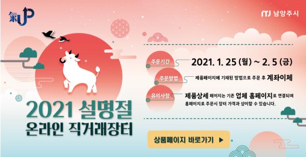 [KNT한국뉴스타임] 남양주시는 설 명절을 맞아 1월 25일부터 2월 5일까지 12일간 온라인 직거래장터를 운영한다고 밝혔다.