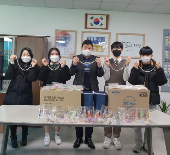 [KNT한국뉴스타임] 안성시 공도읍 경기창조고등학교 학생(600명) 대표는 지난 19일 관내 어린이들과 어려운 이웃을 위한 마스크 스트랩 1,200개를 공도읍행정복지센터에 기탁했다.