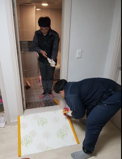 이번 주거환경개선사업은 치매와 당뇨로 인해 걷지 못하고 집에서 기어서 이동해야하는 노인의 화장실 진출입을 돕기 위해 진행됐다. 평소 거실과 화장실 간 높이가 17㎝로 홀로 있을 때 화장실을 가지 못하는 어르신을 돕기 위해 지산동 지역사회보장협의체 김준아 위원(한일 인테리어 대표)이 재능기부를 나선 것이다.