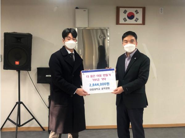 1월 19일 안양시 비산1동 행정복지센터에 대림대학교 총학생회가 복지사각지대를 위한 이웃돕기 성금 284만원을 기부했다.