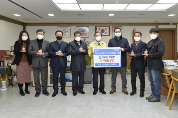 [KNT한국뉴스타임] 포천시는 지난 20일 선단동 소재의 ㈜동양식자재마트(대표이사 임석원)에서 코로나19 방역 및 이웃돕기를 위해 쌀(10KG) 100포를 기탁했다고 밝혔다.