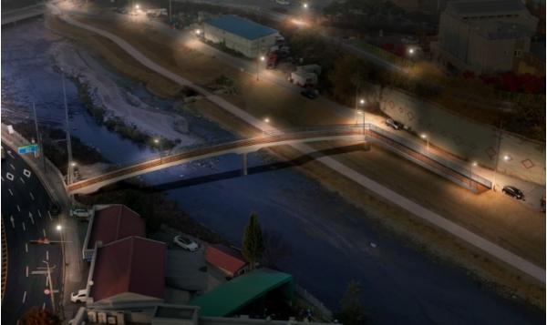 이에 구는 10억원을 들여 지난해 6월부터 지반조사, 교량 공법심의, 디자인 심의 등을 거쳐 12월 설계를 완료하고 올 상반기 준공을 목표로 공사에 착수했다.