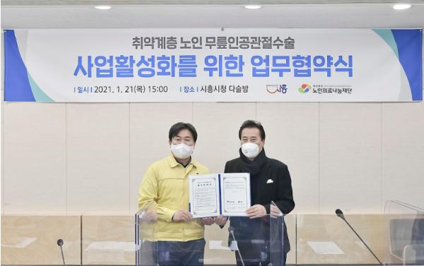 [KNT한국뉴스타임] 시흥시는 노인의료나눔재단과 손잡고 취약계층 노인 무릎인공관절수술 지원을 확대한다.