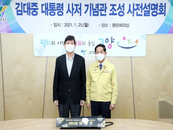 이재준 고양시장과 김대중 대통령 3남 김홍걸 국회의원이 참석한 가운데 열린 이번 사전 설명회에서는 ▲상징건축물로써 김대중 대통령 사저의 역사적 의의, ▲사저 리모델링 기본 방향, ▲콘텐츠 구성, ▲사저 조성 후 운영방향 등에 대해 심도있는 보고와 질의응답 시간을 가졌다.