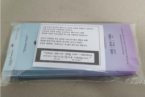 지난 6일, 군에서 마스크 3만 8천장을 수령, 2주간 직원들이 짬짬이 우편작업을 마무리해 13일부터 순차적으로 발송했으며, 우편물을 수령하신 어르신들의 감사 전화가 끊이지 않고 있다.