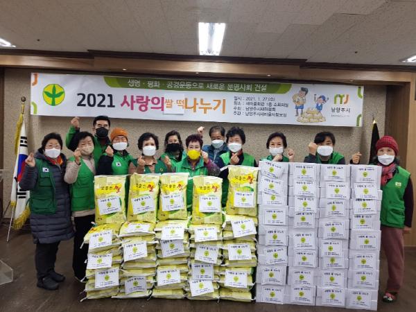 [KNT한국뉴스타임] 남양주시새마을사랑모임이 지난 27일 2021년 신축년 설 명절을 맞아 주위의 어려운 이웃을 돕기 위한 ‘사랑의 쌀·떡국떡 나누기’ 행사를 마련했다.