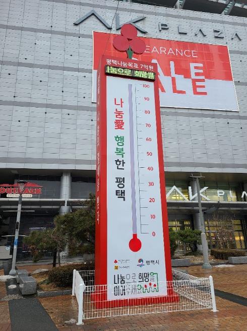 [KNT한국뉴스타임] 경기사회복지공동모금회와 평택시가 함께한 희망2021나눔캠페인 사랑의 온도탑의 온도가 116도를 기록하며, 목표액인 7억원을 초과달성한 것으로 나타났다.
