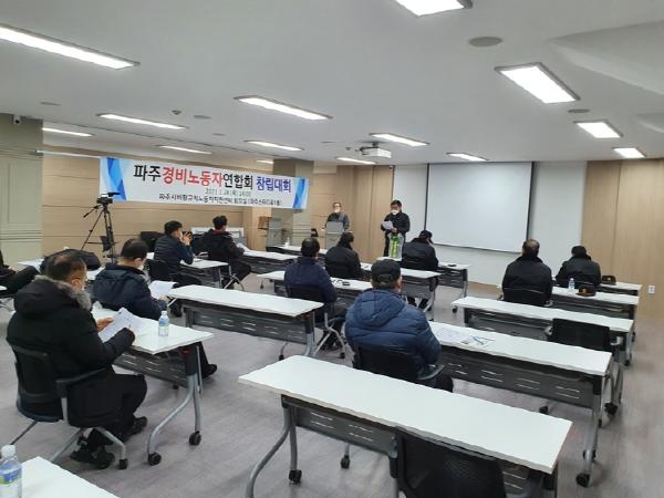 [KNT한국뉴스타임] 파주경비노동자연합회가 지난 28일 파주스타디움 내 파주시비정규직노동자지원센터 회의실에서 창립총회를 개최했다.