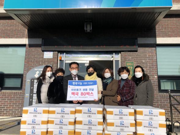 [KNT한국뉴스타임] 평택시여성경영인협의회는 29일 취약계층이 다가오는 설과 2021년 새해를 든든하게 시작할 수 있도록, 떡국 80박스(150만원 상당)를 평택시 안중출장소에 기탁하여 따뜻한 감동을 전했다.