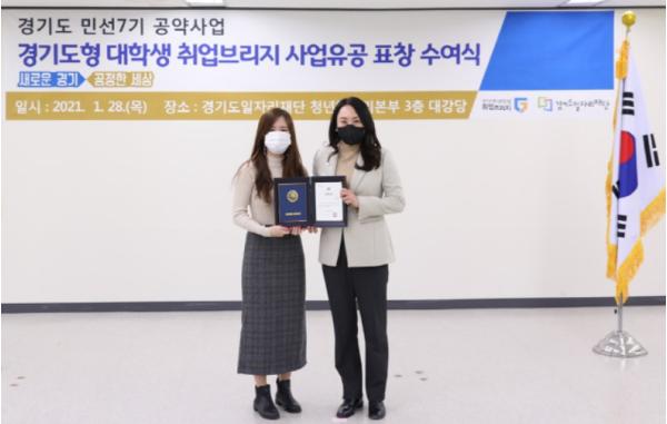 [KNT한국뉴스타임] 경기도와 경기도일자리재단이 28일 부천 재단 청년일자리본부에서 ‘경기도형 대학생 취업브리지 사업’ 유공 표창 수여식을 열었다.
