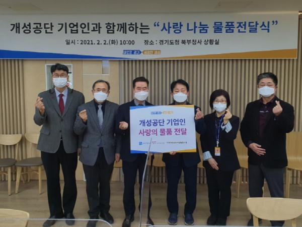 [KNT한국뉴스타임] 경기도는 2일 오전 경기도청 북부청사 상황실에서 ‘개성공단 기업인과 취약계층이 함께하는 사랑 나눔 물품 전달식’을 진행했다고 밝혔다.