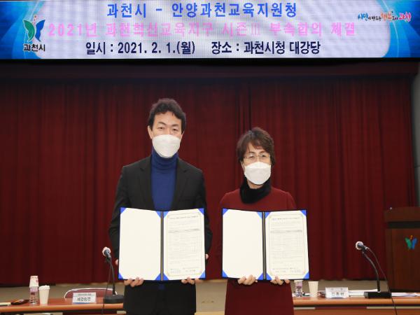 이와 관련, 김종천 과천시장과 전성화 안양과천교육지원청 교육장은 1일 과천시청 대강당에서 ‘과천혁신교육지구 시즌Ⅲ’ 사업추진을 위한 부속 합의를 체결하였다.