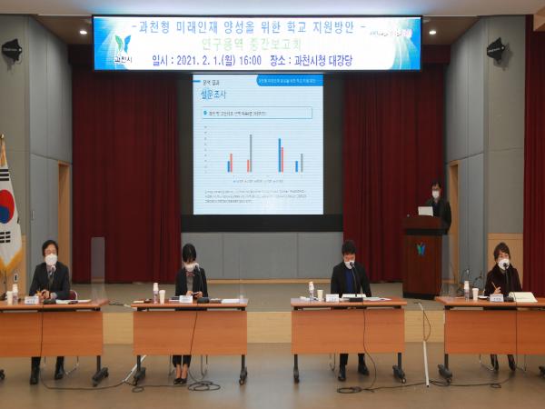 [KNT한국뉴스타임] 과천시는 1일 오후 4시 과천시청 대강당에서 ‘과천형 미래인재 양성을 위한 학교 지원방안 연구용역’ 중간보고회를 개최하였다.