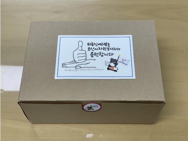 봉사에 참여한 한 전문봉사단원은 “코로나19의 장기화로 의료진의 건강이 상할까 제일 걱정되었는데 오늘 전달된 간식이 의료진에게 조금이나마 힘이 되었으면 좋겠다.”며 의료진 응원 메시지를 전했다.