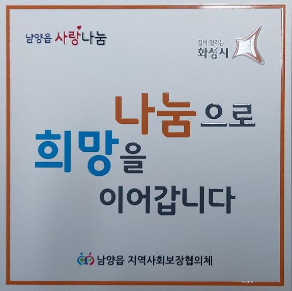 [KNT한국뉴스타임] 남양읍지역사회보장협의체는 지난해 매월 정기 후원 또는 일정금액 이상을 후원한 업체(기업) 19곳에 ‘남양읍 사랑나눔’ 후원증서를 제작해 전달한다고 2일 밝혔다.