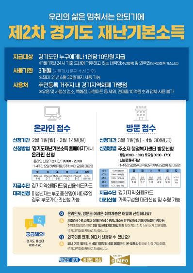 [KNT한국뉴스타임] 김포시는 제2차 경기도 재난기본소득을 2월 1일부터 경기도 재난기본소득 홈페이지를 통해 접수한다고 밝혔다.