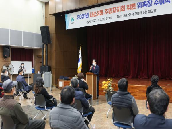 [KNT한국뉴스타임] 의왕시 내손2동은 주민자치회로 전환된 이후 주민자치회 위원들의 첫 번째 위촉식을 2일 주민센터 대강당에서 개최했다.