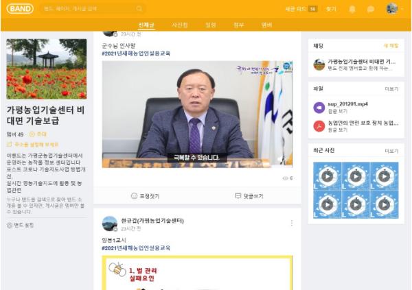 또한 코로나19로 대면교육이 취소된?년 새해 농업인 실용교육’비대면 자료를 쉽게 접할 수 있도록 밴드에 개시하여 농업인들의 불편함을 해소하였다.