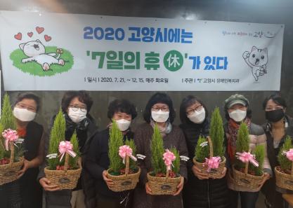 ‘고양시에는‘7일의휴(休)’가있다’는 7주간 주1회씩 다양한 프로그램을 경험하는 소규모 그룹별 참여형 휴식 프로그램이다. 코로나19로 서비스 단절과 외부활동 제한으로 어려움을 겪는 장애인 가족들이 스트레스를 해소하고 비대면 온라인 소통을 통해 정서적 교감도 느낄 수 있도록 운영한다.