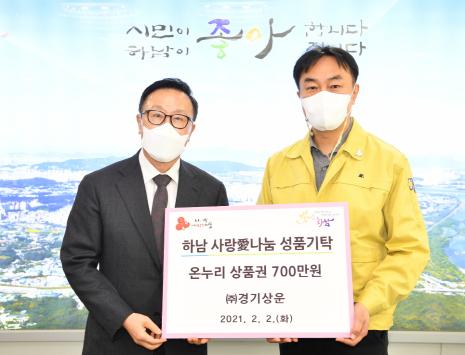 ㈜경기상운(대표 허상준)은 2일 온누리 상품권 700만원을 시에 기탁했다.