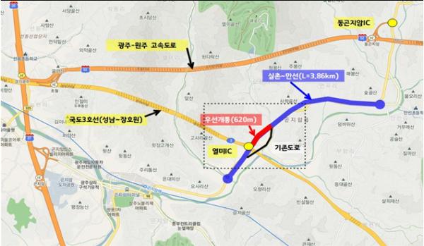 한편, 국지도 98호선 ‘실촌~만선’ 도로공사는 기존 도로 주민 이용 불편 해소를 위해 지난 2018년 착공했다. 총 사업비 1,337억 원이 투입되며 광주시 곤지암읍 열미리에서 만선리까지 전체 연장 3.8km 도로는 오는 2023년 9월 개통할 예정이다.