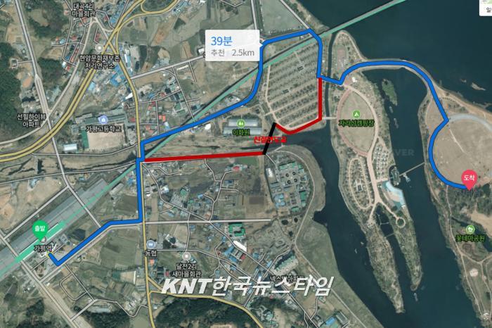 가평읍 달전리 하수도사업소 입구에서 자라섬 이화원 좌측으로 연결되는 인도교는 기존 자라섬캠핑장 입구로 우회하던 2km 도보길을 직선으로 연결하여 가평역에서 15분 내외로 접근성이 개선된다.