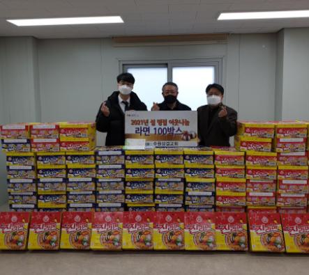 [KNT한국뉴스타임] 수원시 팔달구 매교동에 소재한 수원성결교회에서는 2월 3일(수) 저소득층에게 전달할 라면 100박스를 매교동 행정복지센터에 전달하였다.