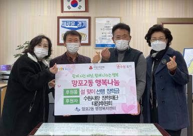 [KNT한국뉴스타임] 지난 4일, 망포2동 행정복지센터에서는 2021년 설 명절을 맞아 관내 고등학생 2명에게 수원사랑장학재단 태장후원회 선행장학금 100만원(각 50만원)을 전달했다.