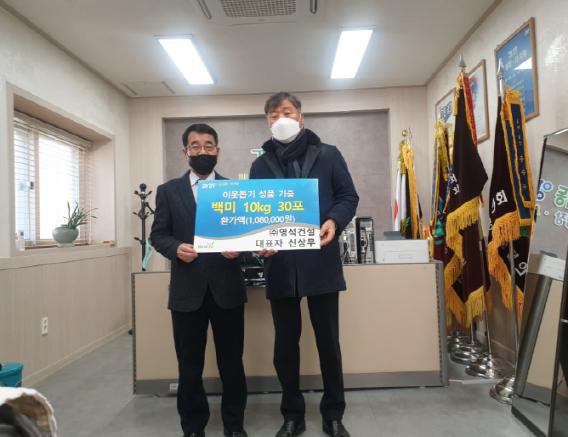영석건설(주)은 지난 3일 회천1동 행정복지센터를 방문해 설 명절을 맞아 따뜻한 명절을 보낼 수 있도록 저소득 취약계층에 써달라며 백미10kg 30포(1,080,000원 상당)를 기부했다.