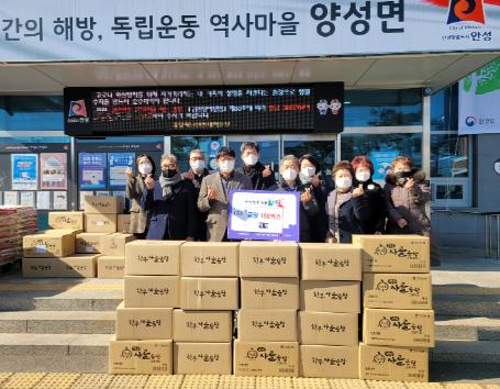 권순광 양성면장은 “매년 잊지 않고 이웃사랑을 실천해 주시는 기탁자께 진심으로 감사드린다. 기탁해주신 분의 소중한 마음을 담아 필요하신 분들께 정성스럽게 전달하겠다”고 말했다.