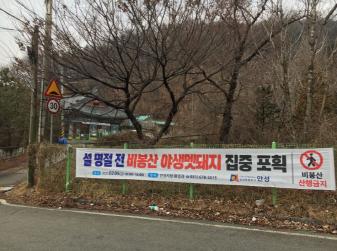 이에 안성시는 같은 피해사례를 사전에 방지하고자, 설 명절 전 비봉산 야생멧돼지 포획계획을 수립하였고, 포획활동 일자 및 시간, 등산로 통제 등을 안내하기 위해 지난 3일부터 재난문자 발송, 마을방송, 비봉산 주요 등산로(8개소)에 산행금지 현수막을 게시하는 등 홍보를 실시하였으며, 5일 오전까지 홍보를 지속할 예정이다.