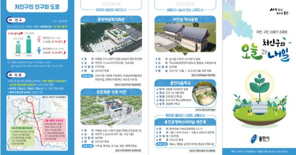 이에 구는 ▲반도체 클러스터 일반산업단지 ▲용인 센트럴파크 조성 ▲이동저수지 환경생태공원 ▲용인에코타운 ▲Farm & Forest 타운 ▲청년 김대건길 ▲동부여성복지회관 ▲보훈회관 신축 이전 ▲처인성 역사공원 ▲용인다움학교 ▲용인공영버스터미널 재건축 등 11개 시책사업이 일목요연하게 정리된 홍보물 1만부를 만들어 각 읍?면?동에 배포키로 했다.