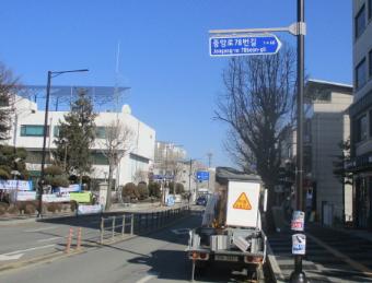 도로명판 재설치 대상은 중앙로 지중화 사업구간(신읍동 포천삼거리~하나로마트 앞) 약 1.8㎞에 설치된 도로명판 32개소이다. 시는 지중화 사업으로 설치 지주가 없어 설치하지 못한 도로명판 2개소에 대해서도 4월 중으로 보행자용 도로명판을 설치할 예정이다.