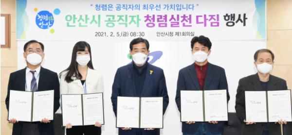 [KNT한국뉴스타임] 안산시는 5일 시청 제1회의실에서 청렴 서약식을 열고 ‘청렴하소! 부패없소!’를 다짐했다.